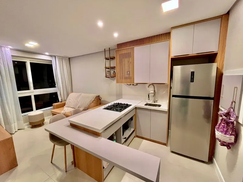 Lindo apartamento de um dormitório, completamente mobiliado sob medida, equipado, tudo novinho, com excelente orientação solar (leste/norte), cozinha, churrasqueira, área de serviço separada, living dois ambientes, banheiro social com ventilação natural. Edificio com academia, kids, salão decorado e piscina.